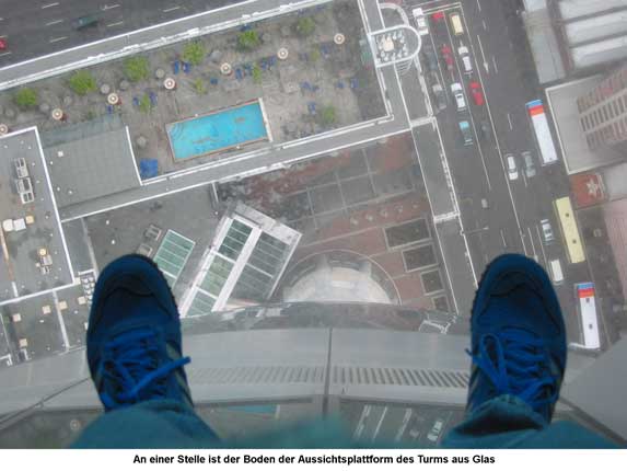 Es führen Expresslifte mit Fenstern hinauf. Oben angekommen haben wir einige Aufnahmen vom Stadtpanorama
