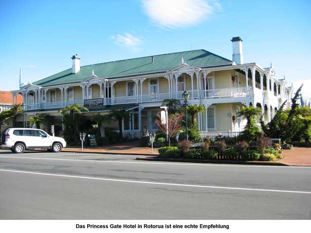 Tarawera ausgeschildert. Zum Ausgangspunkt der Wanderung gelangt man dann über einige malerische